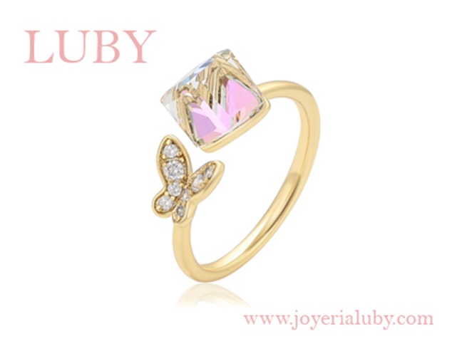 ANILLO CUBO-MARIPOSA ROSA BRILLANTE