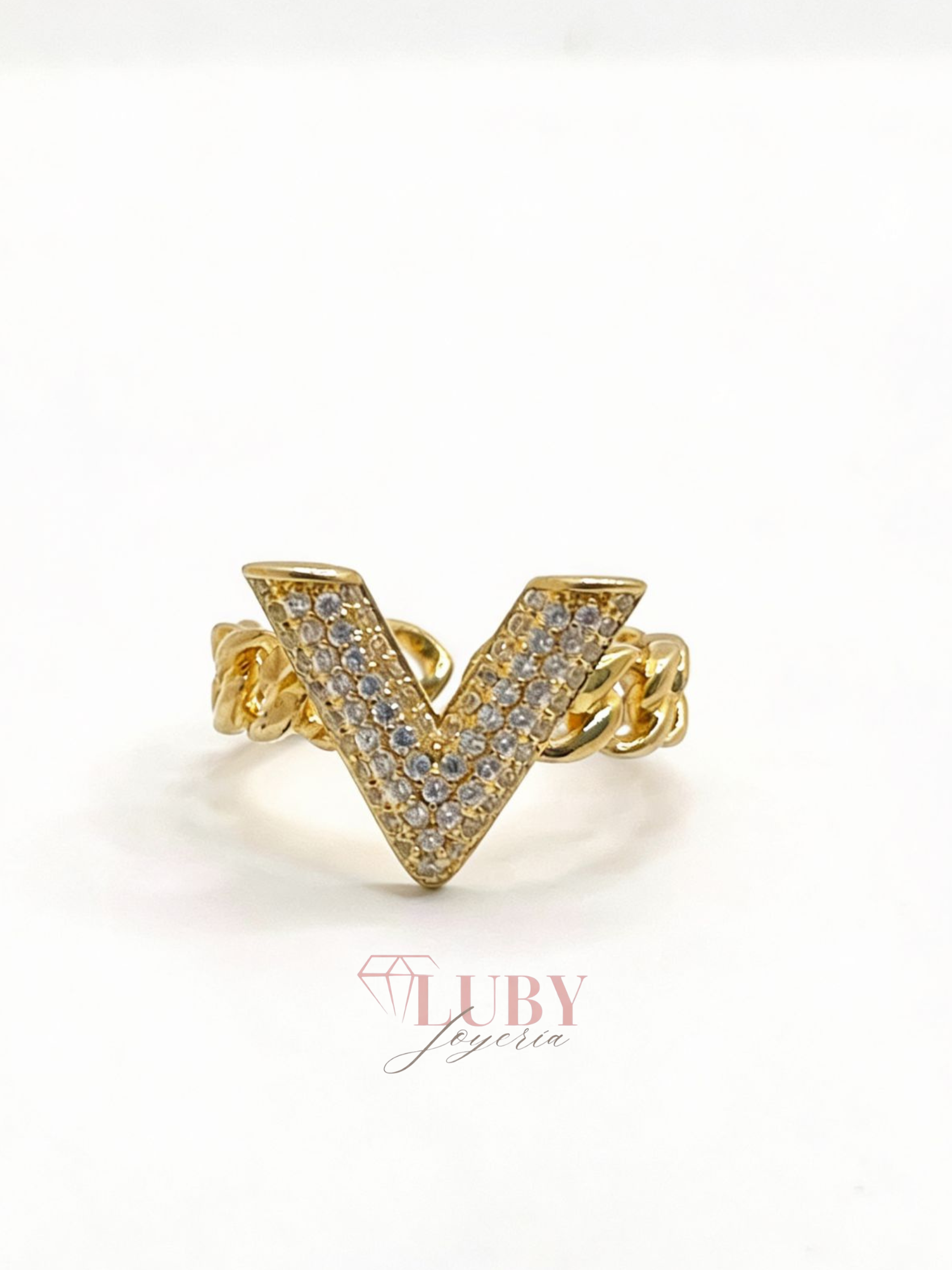 Anillo con forma V elegante de chapa de oro 14k