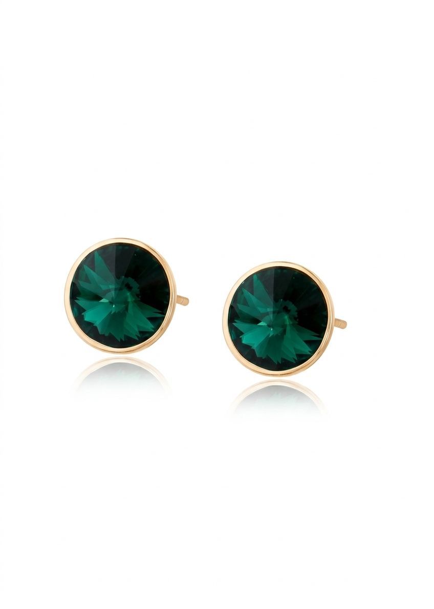 Aretes en forma circular con piedra color verde esmeralda en chapa de oro rosa de 14k.