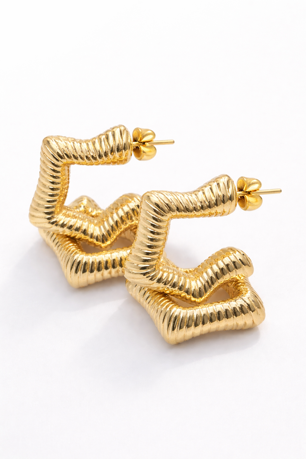 Arracadas medias estrellas estilo chunky en chapa de 14k.