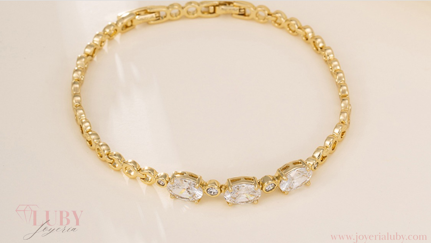 Hermosa pulsera elegantes con óvalos  con brillante zirconia  en chapa de oro de 14k.