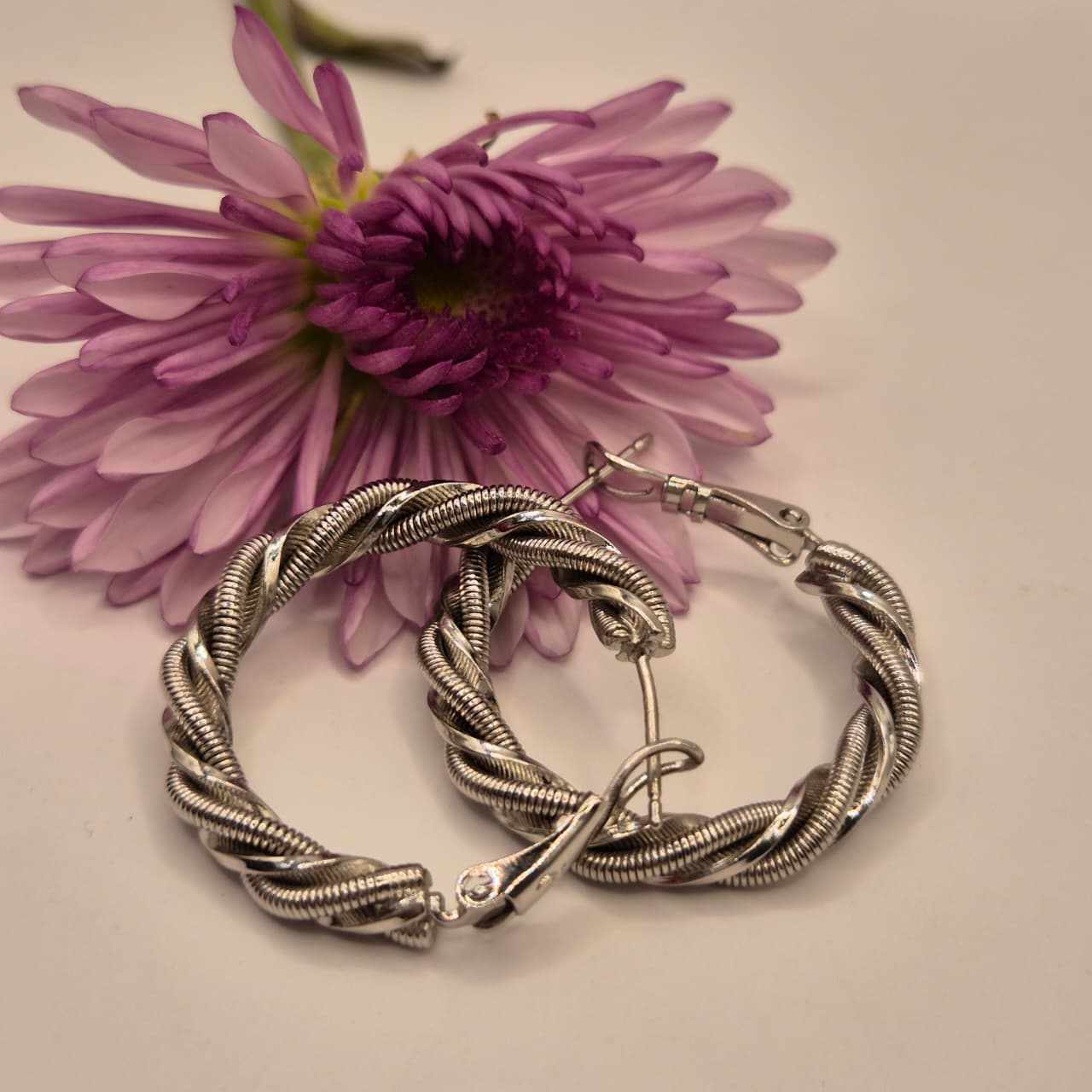 Hermosas coquetas pequeñas gruesas torcidas y texturizadas en chapa de rodio.